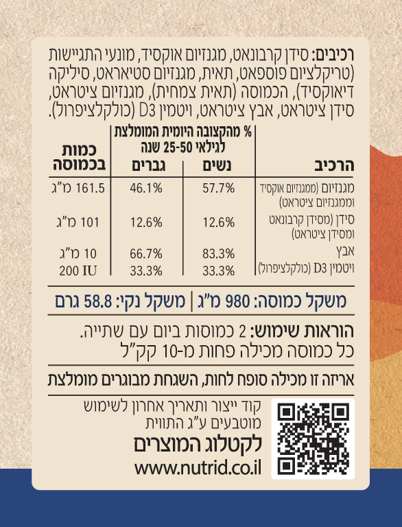 • מועשרות בוויטמין D3 להעצמת ספיגת המינרלים בגוף