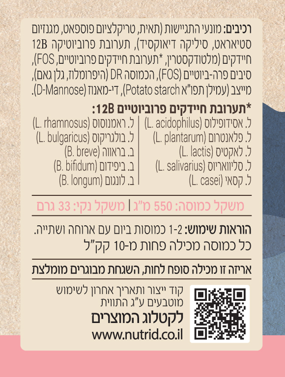 • בציפוי פטנטי ™DRcaps השומר על יציבות החיידקים ומגן מפני התפרקותם בקיבה