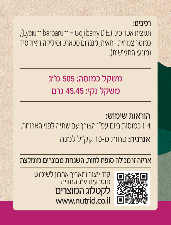 המידע שלפניך הינו מידע מקצועי מבוסס מחקרית לצרכי העשרה המתייחס לרכיבים בצורתם הטבעית ואינו מתייחס לתוסף תזונה זה או אחר.