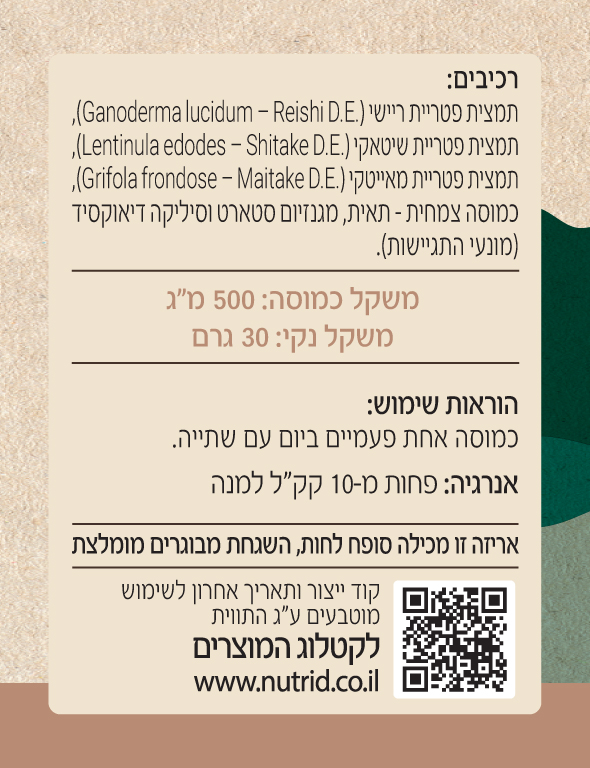 כמוסות פטריות כוח של נוטרי די מכילות פורמולה מתקדמת של שיטאקי, ריישי ומאיטקה - שלוש הפטריות הנחקרות ביותר בעשור האחרון.