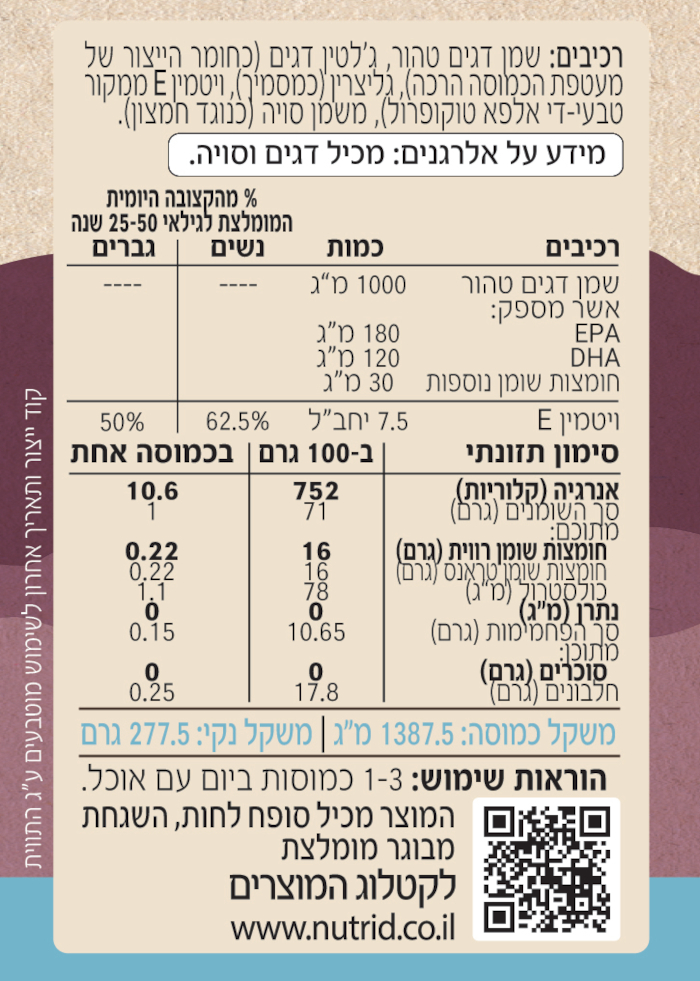 • עם ריכוז גבוה של חומצות שומן EPAו- DHA וויטמין E טבעי