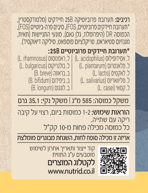 • בציפוי פטנטי ™DRcaps השומר על יציבות החיידקים ומגן מפני התפרקותם בקיבה