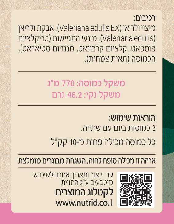 • ילדים, נשים בהריון ומניקות - לפני השימוש במוצר יש להיוועץ ברופא המטפל.
