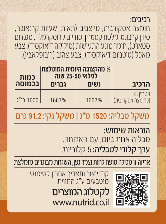• רכיבים טבעיים בלבד, ללא חומרים משמרים וללא תוספת סוכר