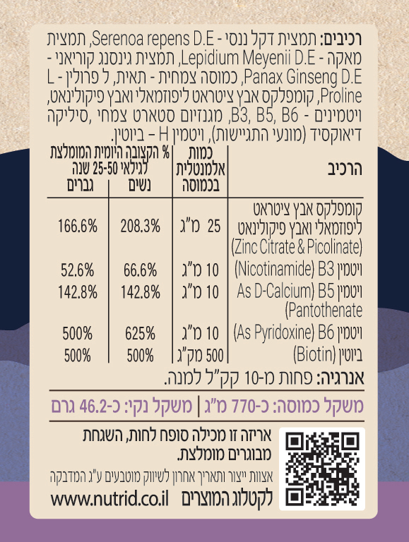 המידע שלפניך הינו מידע מקצועי מבוסס מחקרית לצרכי העשרה המתייחס לרכיבים בצורתם הטבעית ואינו מתייחס לתוסף תזונה זה או אחר.
