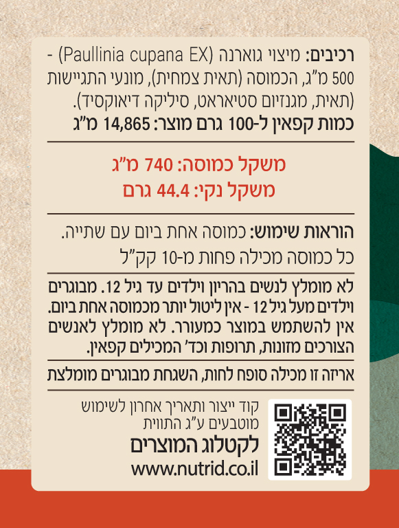 • חשוב לזכור כי צמח הגוארנה מכיל קפאין.