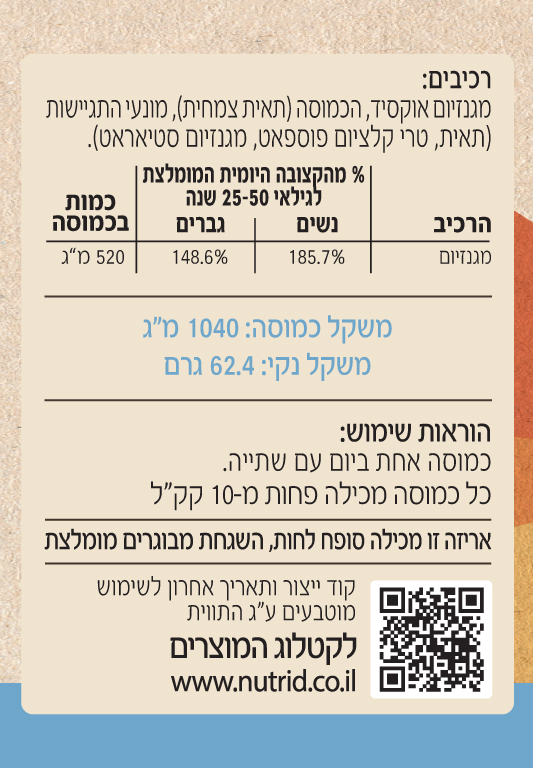 כמוסות מגנזיום אוקסיד במינון 520 מ"ג99.90 ₪