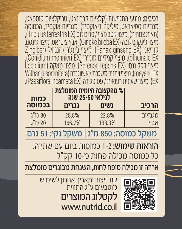 המידע שלפניך הינו מידע מקצועי מבוסס מחקרית לצרכי העשרה המתייחס לרכיבים בצורתם הטבעית ואינו מתייחס לתוסף תזונה זה או אחר.