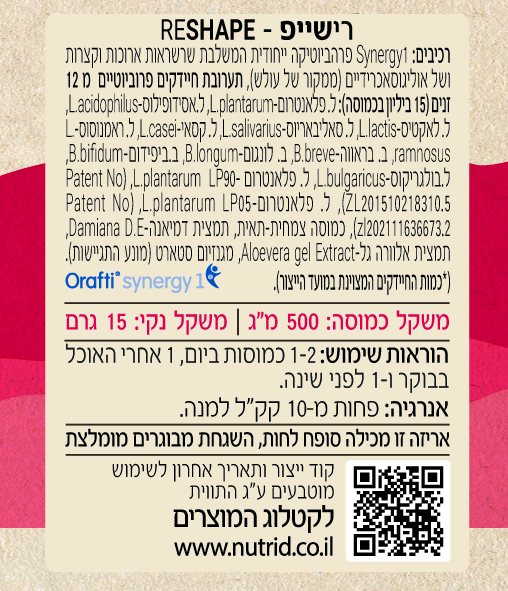 לכן מומלץ לבחור בסינביוטיקה כמו ReShape, שמשלבת 12 זני פרוביוטיקה רשומים שנחקרו, עם פרהביוטיקה פטנטית וזנים פטנטיים ייחודיים.