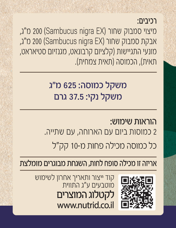 • ילדים, נשים בהריון ומניקות - לפני השימוש במוצר יש להיוועץ ברופא המטפל.