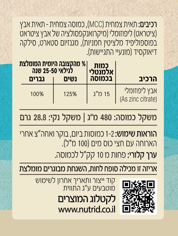 אבץ בטכנולוגיה ליפוזומלית לספיגה הגבוהה ביותר169.90 ₪ -