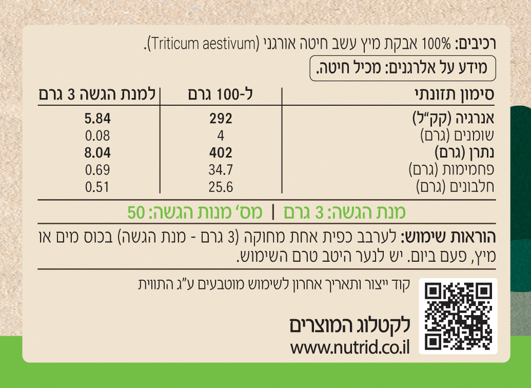 אבקת מיץ עשב חיטה של נוטרי די מכילה מיצוי מרוכז של עשב החיטה, המופק בטכנולוגיה ייחודית של הקפאה וייבוש השומרים על ערכיו התזונתיים בשלמותם.